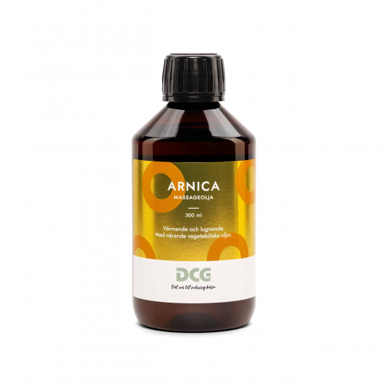 Arnica massageolja är en värmande och avslappnande massageolja för kropp och sinne. Oljan innehåller en harmonisk blandning av naturliga ingredienser såsom ekologisk kallpressad olivolja, eteriska oljor av lavendel-, eukalyptus- och kamomillolja kombinerade med extrakt av arika och ringblomma.